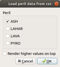 It allows to visualize the input data corresponding to the selected perils. Also in this case, it is possible to check Render higher values on top, in order to avoid hiding interesting high-valued points below other rendered points.